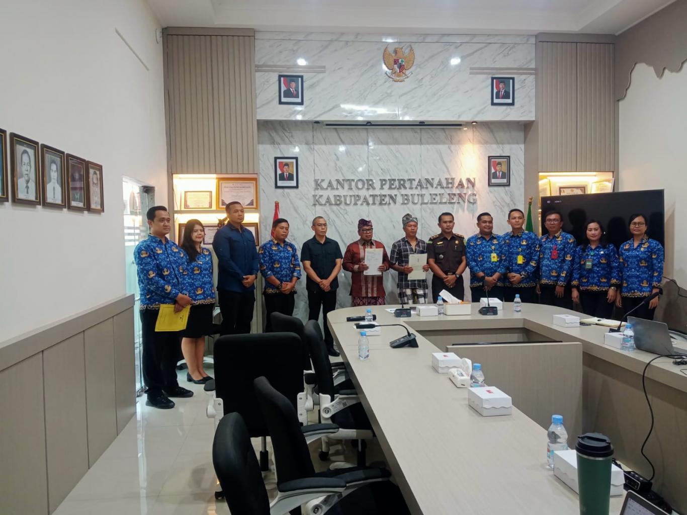 Rapat tersebut dihadiri oleh berbagai unsur pemangku kepentingan, antara lain perwakilan Komandan Distrik Militer 1609, Kepala Kepolisian Resor Buleleng, Kepala Kejaksaan Negeri Buleleng, Kepala Dinas Perumahan, Kawasan Permukiman dan Pertanahan Kabupaten Buleleng, Kepala Badan Pengelolaan Keuangan dan Pendapatan Daerah Kabupaten Buleleng, Kepala Dinas Pekerjaan Umum dan Tata Ruang Kabupaten Buleleng, Kepala Dinas Perdagangan, Perindustrian, Koperasi Usaha Kecil dan Menengah Kabupaten Buleleng, Kepala Bagian Hukum Sekretariat Daerah Kabupaten Buleleng, Perbekel, serta perwakilan penerima sertifikat redistribusi tanah.